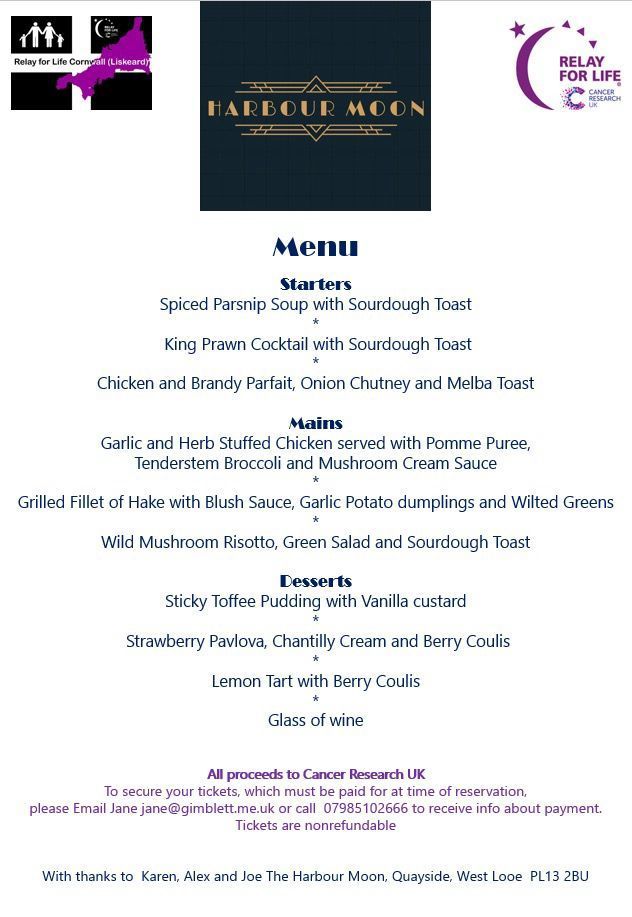- Direct to our Not-for-Profit account. Please ask for account details. All monies will be donated to Cancer Research UK at the end of each month.