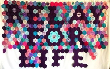 This is a year-round event ending with a 24-hour family festival. Most of our fundraising happened at the festival so we were looking for a project we could organise all year. The quilt was one of those 3 o’clock in the morning ideas in March 2016. I have always enjoyed sewing and crafts including having made several hexagon patchwork quilts and I literally dreamt of making a fundraising quilt. Would it work? Would anyone donate? Does my husband think I’ve finally lost the plot? The only way to find out is to try.